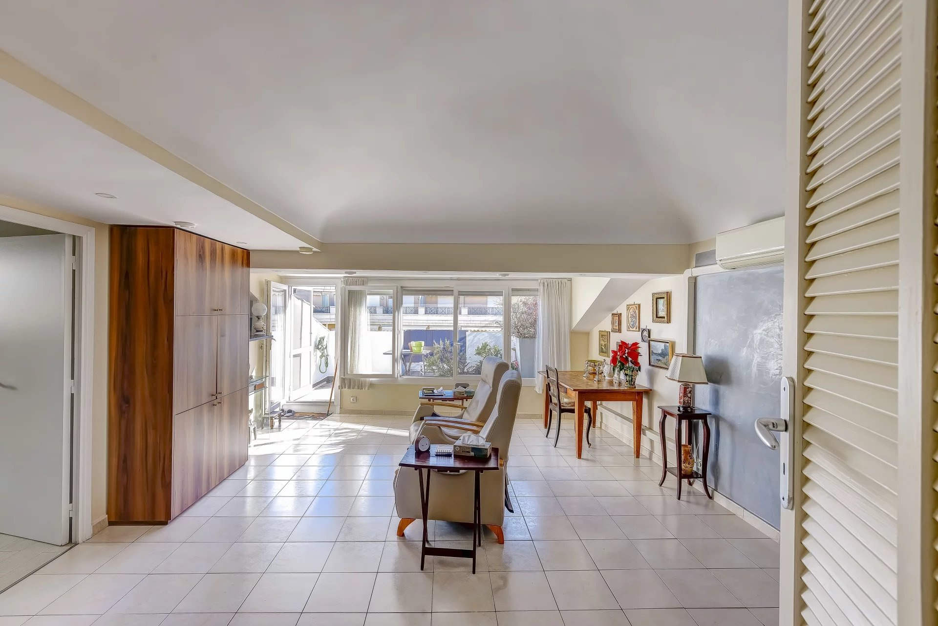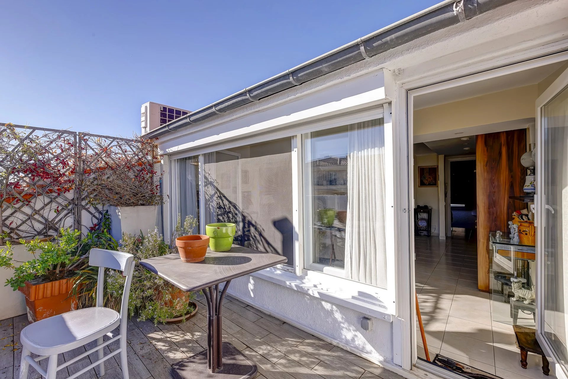Grand T3 - dernier étage - Terrasse avec vue dégagée Grand T3 de 72.14m² carrez, 104.64m² au sol - dernier étage - Terrasse avec vue dégagée Ce bien est localisé au c?ur de la ville de Menton, proche de la mer, des commerces et de la vieille ville. Situé au dernier étage (sans ascenseur) d'une copropriété très ben entretenue, cet appartement 3 pièces atypique offre une belle luminosité et une configuration pleine de charme. L?appartement se compose d?une entrée, d?un séjour s?ouvrant directement sur une terrasse plein sud en tropézienne vue dégagée, de deux chambres, dont une sous comble et d?une salle d?eau avec wc. Un bien rare, recherché pour son extérieur, son dernier étage et son côté atypique. Montant mensuel des charges de copropriété: 2004euros comprenant eau froide et entretien des parties communes. Montant de la Taxe Foncière: 220 euros Bien soumis au statut des copropriétés, Nb de Lot principaux : 15 Honoraires agence à charge du vendeur. Les informations sur les risques auxquels ce bien est exposé sont disponibles sur le site Géorisques http://georisques.gouv.fr